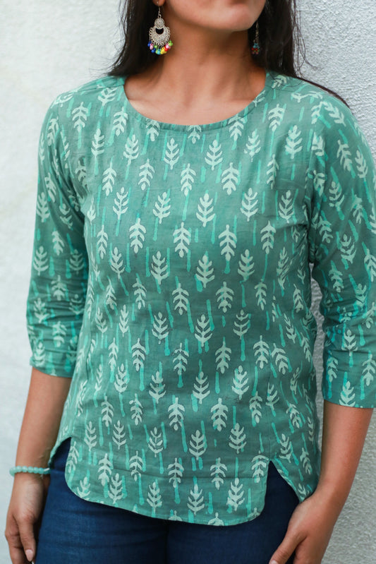 Leafy batik print top