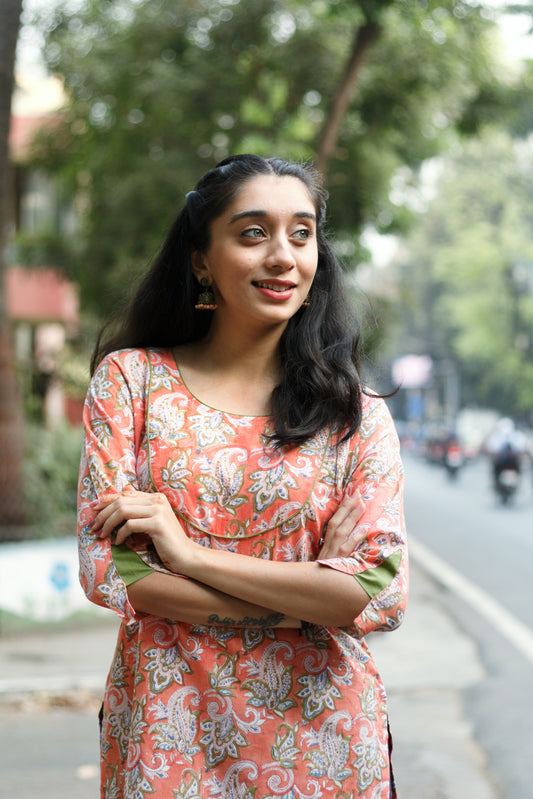 Kesariya block printed kurta