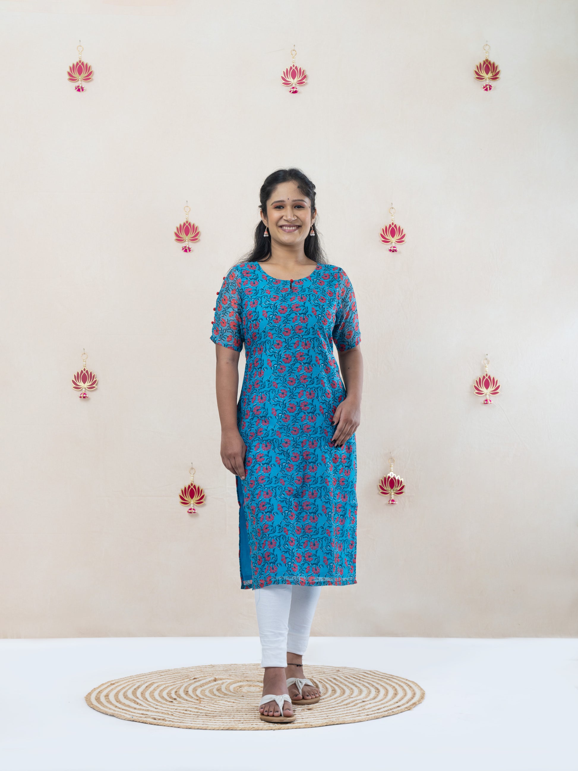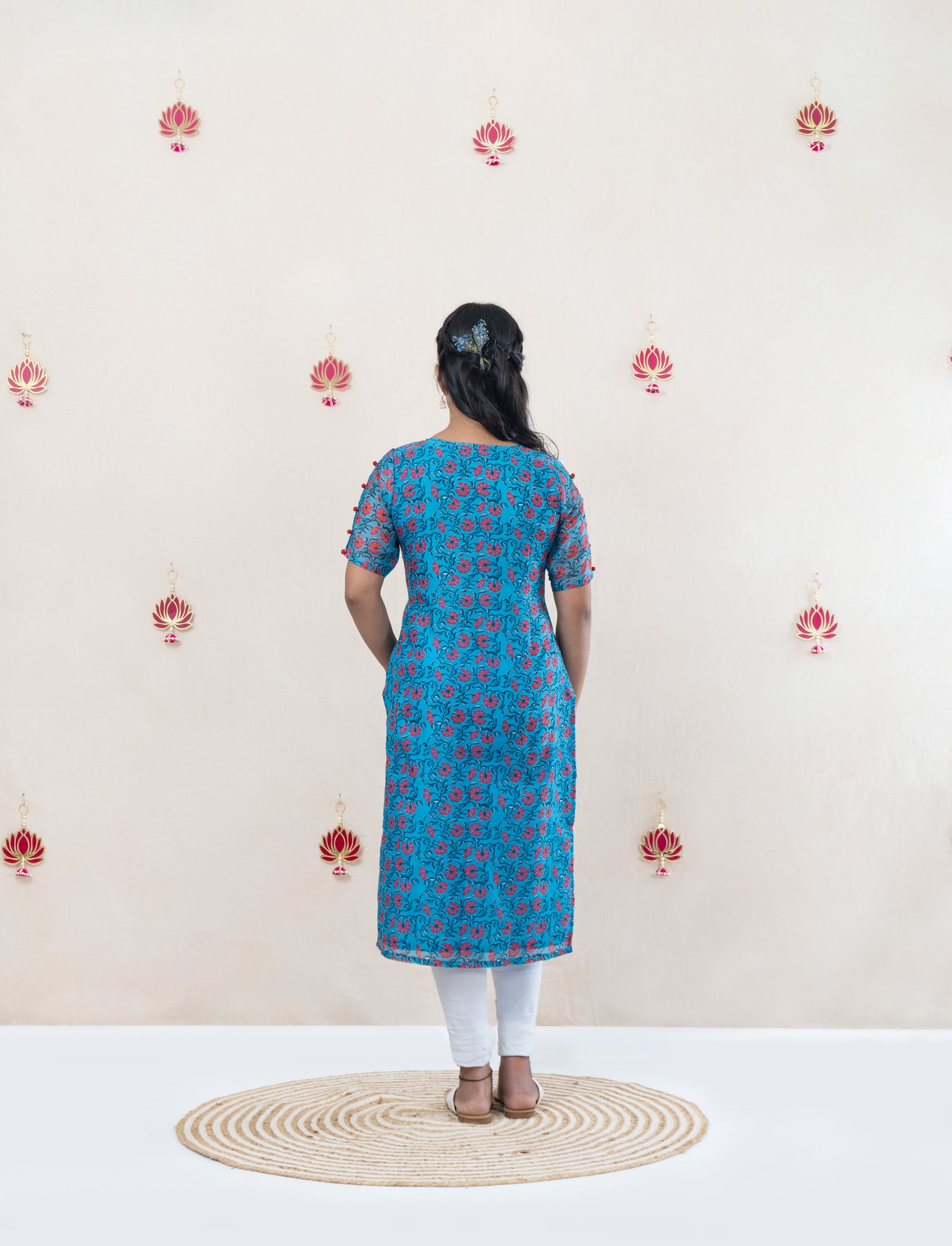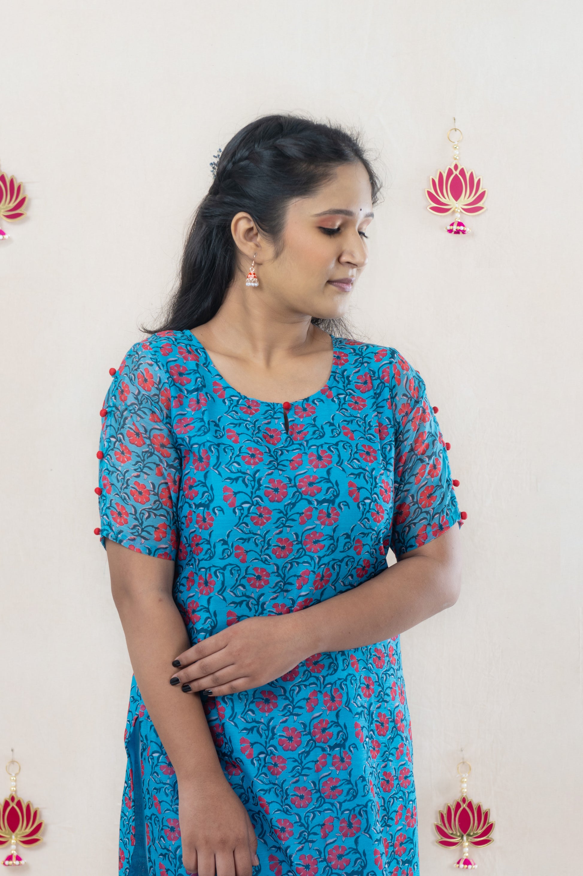 Floral blue chanderi kurta