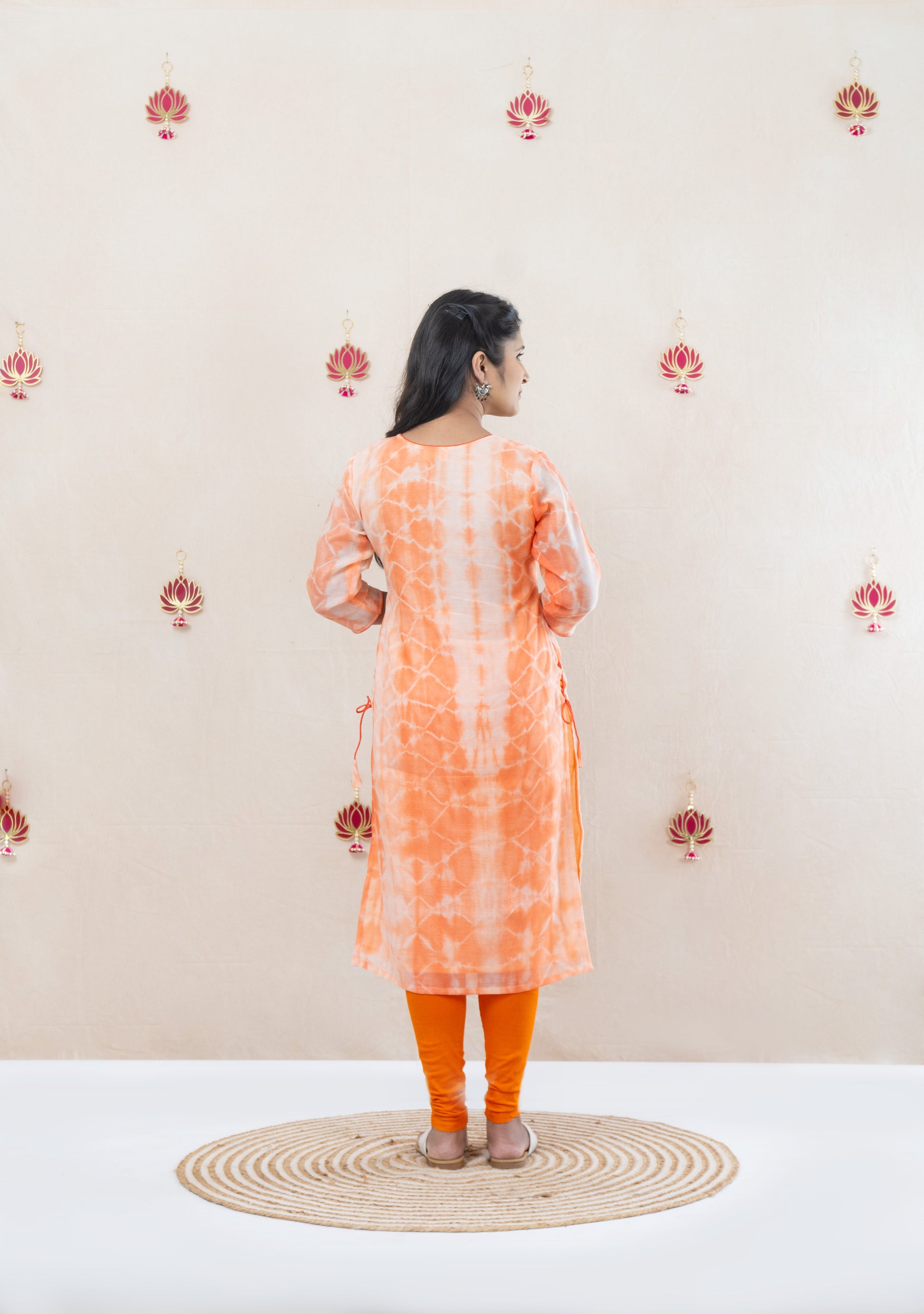 This pink tie-dye kurta is the perfect way to bring the party! It'll be sure to get you noticin' with its tie dye batik textures, chanderi kurta side dori pattern, and contrast blue piping that enhances the design. Plus, it gives you the prettiest festive look! So go ahead and rock this kurta with confidence - you'll be sure to stand out in the crowd!