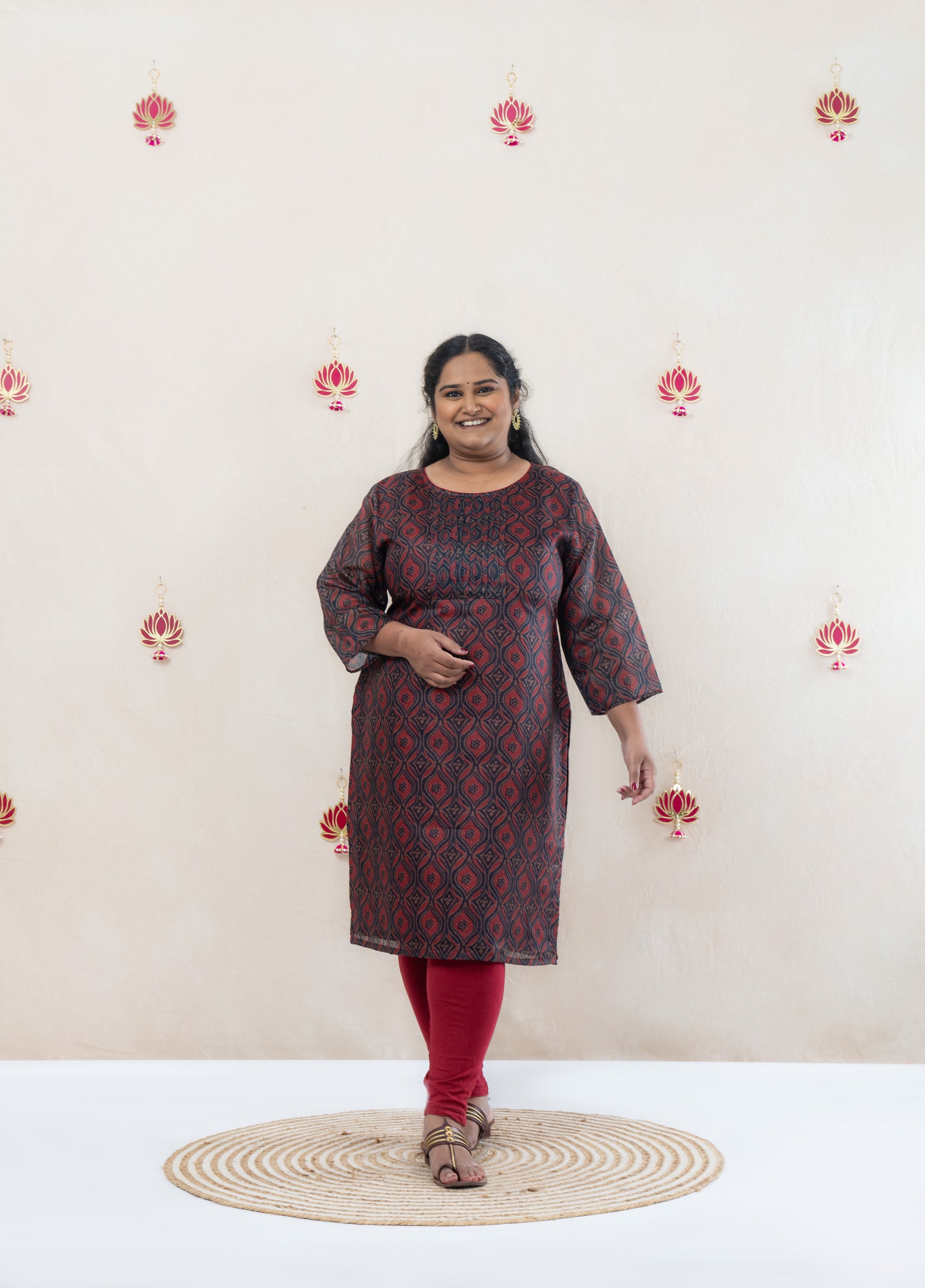 Brighten up your Diwali look with this fun chanderi kurta! The pleats yoke detail adds a unique and beautiful flattering touch, ensuring you look your festive best! So get ready to hit the party and bring the festivity!